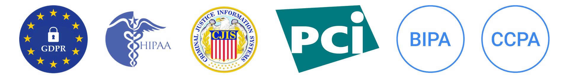 - How to remain in compliance of relevant regulations (such as GDPR, HIPAA, CJIS, BIPA, CCPA, and PCI)