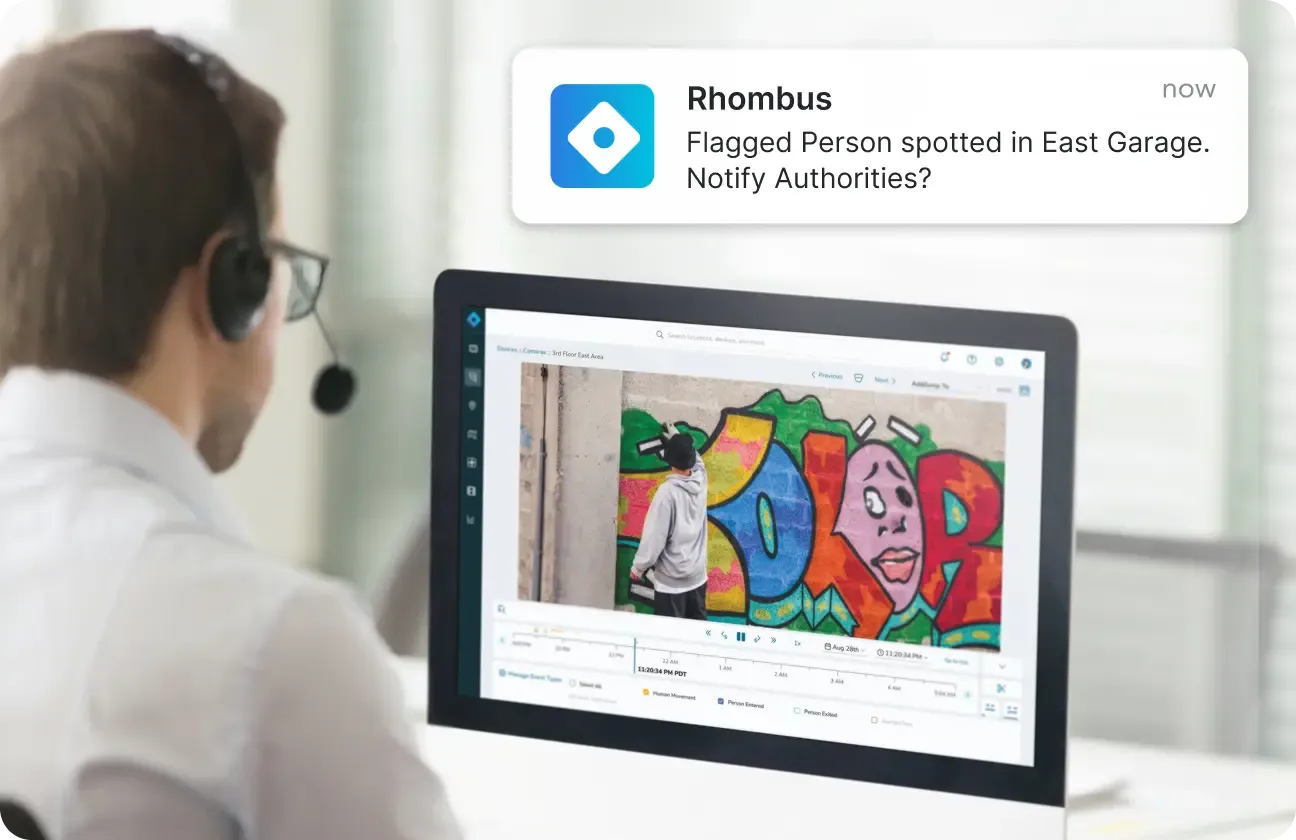 Get intelligent security alerts and use video verification to quickly escalate or dismiss potential emergencies. Relay key details to law enforcement and enhance response with person-of-interest detection, panic buttons, and alarm monitoring.